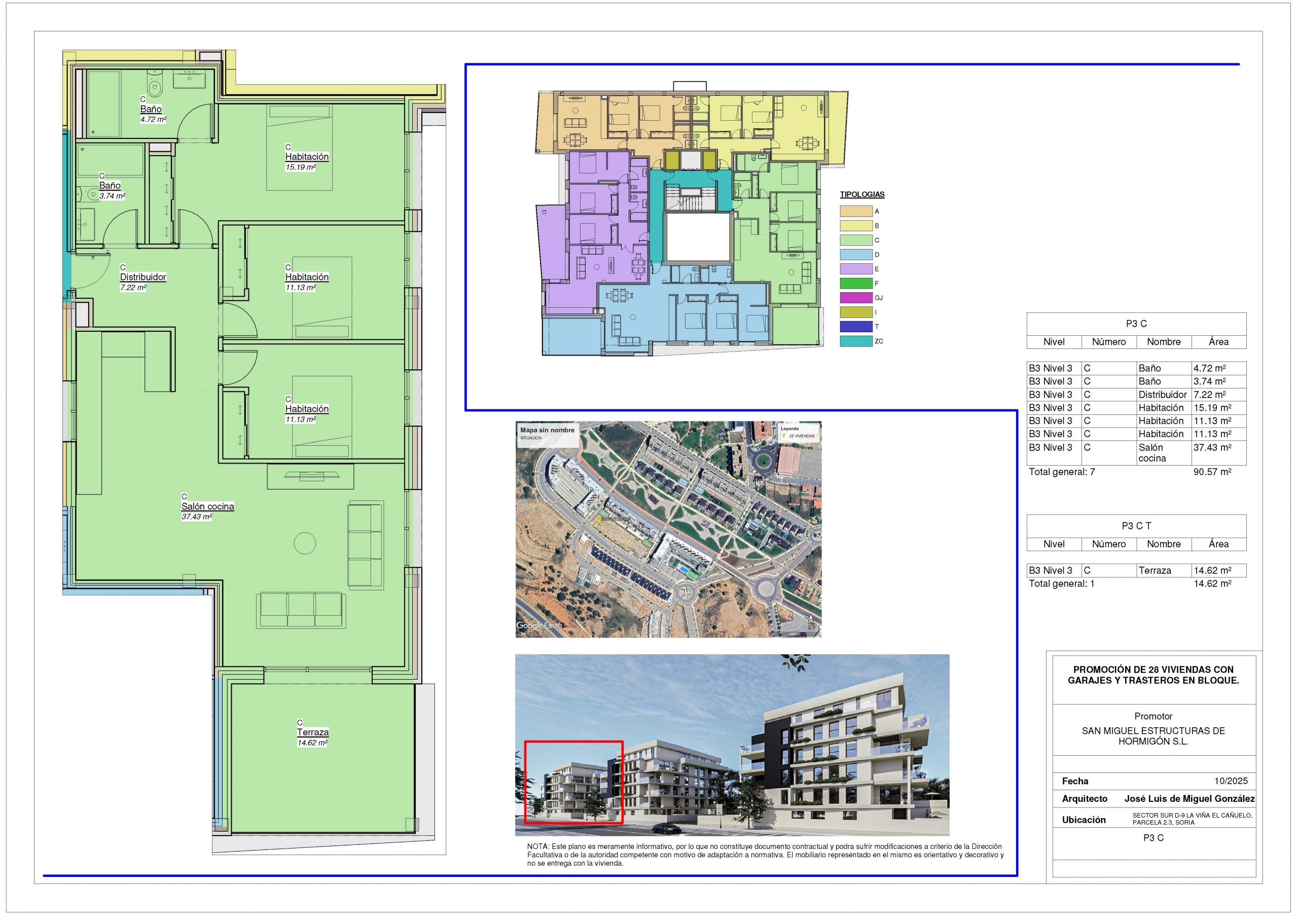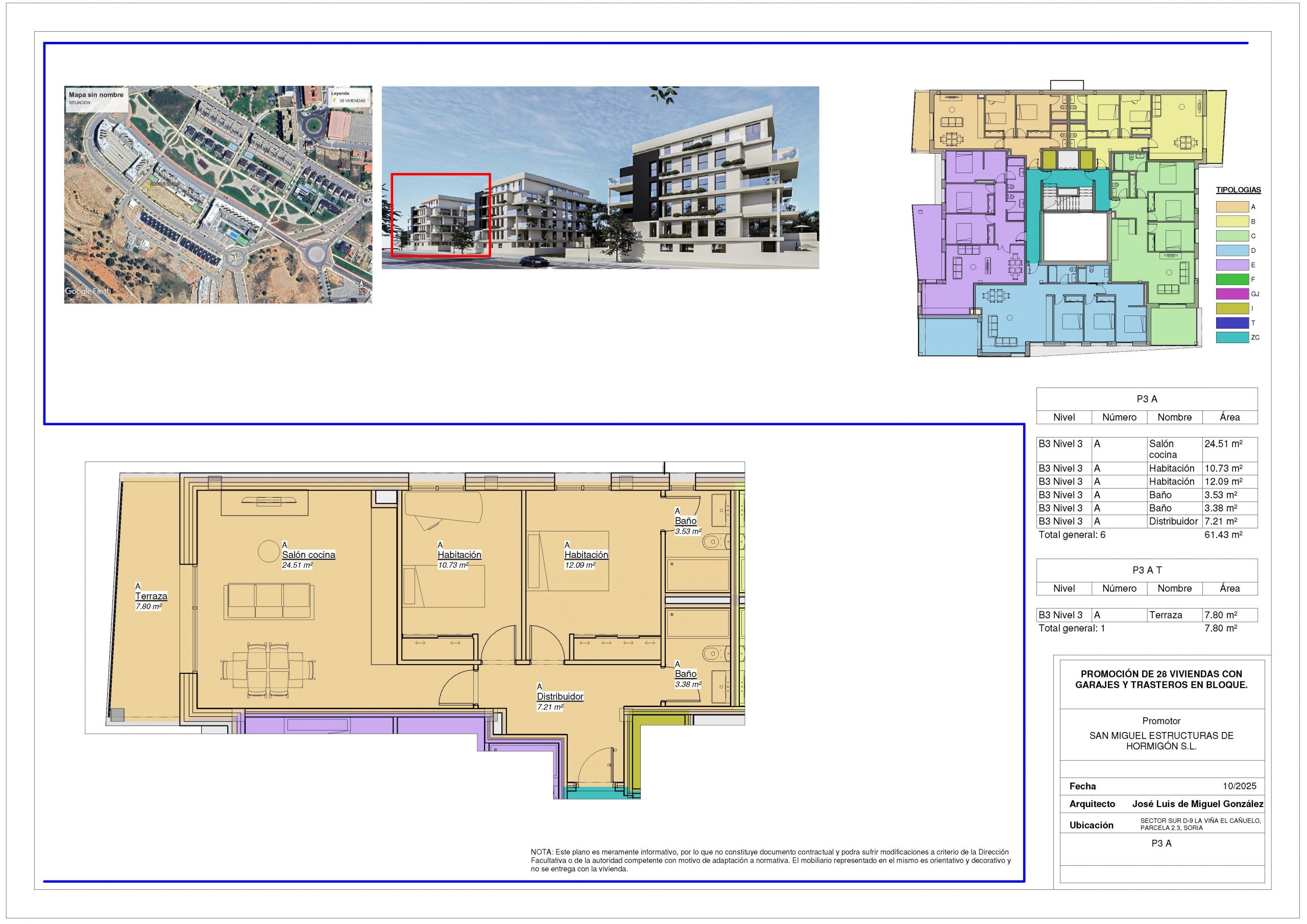 Bloque III de la promoción de obra nueva «Mirador de San Marcos». 28 viviendas de 1, 2 y 3 dormitorios, de las cuales 3 son áticos. Todas con terraza.